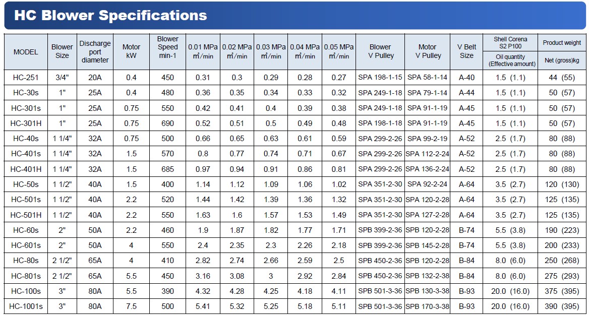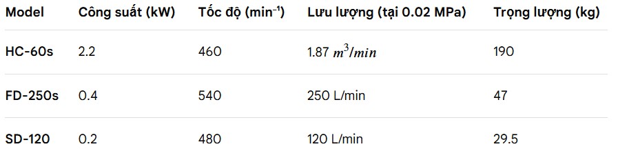 • Ứng dụng: Sục khí xử lý nước thải, thiết bị phun cho lò đốt.
